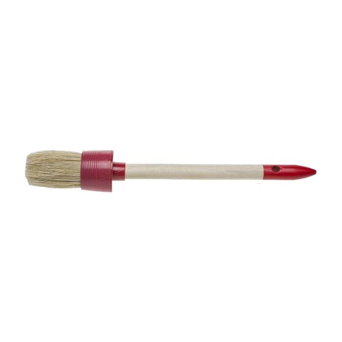 Круглая кисть предназначена для работ с масляными красками и лаками, устойчива к агрессивным составам. Кисть имеет деревянную нелакированную ручку и натуральную щетину.