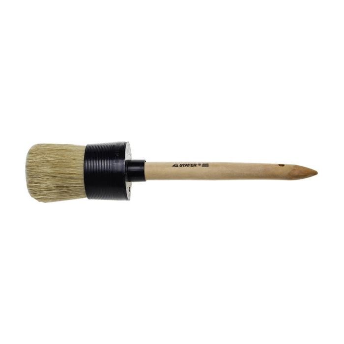 Круглая кисть предназначена для работ с масляными красками и лаками, устойчива к агрессивным составам. Кисть имеет деревянную нелакированную ручку и натуральную щетину.
