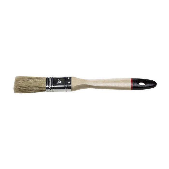 Кисть предназначена для малярных работ со всеми видами лакокрасочных материалов. Более предпочтительна при работе с масляной краской, олифой, древесным маслом. Кисть плоская шириной 20 мм, имеет металлический бандаж, деревянную ручку. Щетина натуральная.