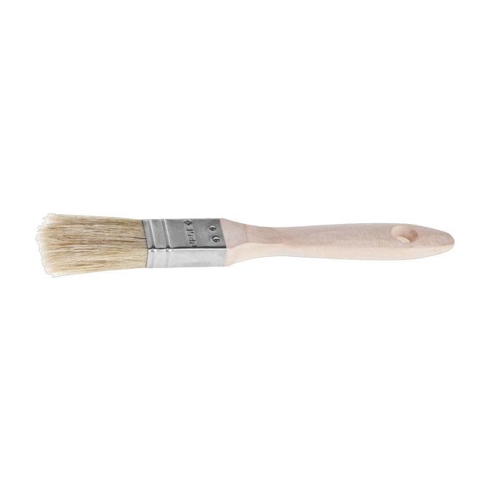 Кисть предназначена для работ с масляными красками и лаками, устойчива к агрессивным составам. Кисть имеет деревянную ручку и натуральную щетину. Размер кисти 25мм.