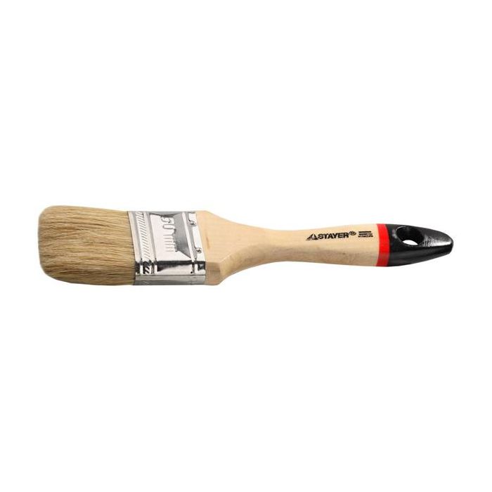 Кисть предназначена для малярных работ со всеми видами лакокрасочных материалов. Более предпочтительна при работе с масляной краской, олифой, древесным маслом. Кисть плоская шириной 50 мм, имеет металлический бандаж, деревянную ручку. Щетина натуральная.