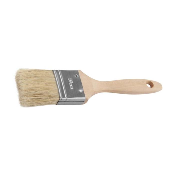 Кисть предназначена для работ с масляными красками и лаками, устойчива к агрессивным составам. Кисть имеет деревянную ручку и натуральную щетину. Размер кисти 50мм.