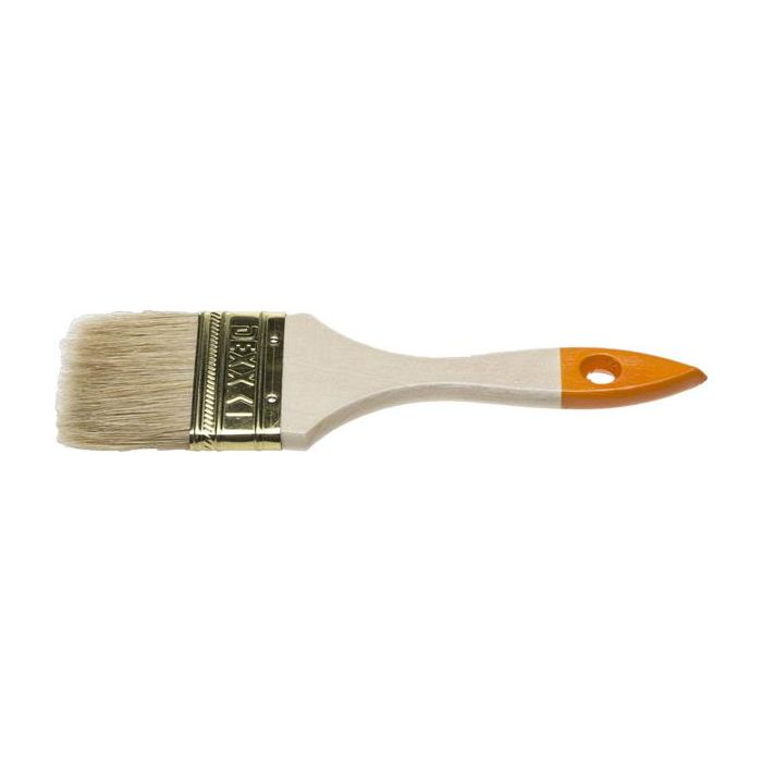 Кисть предназначена для работ с масляными красками и лаками, устойчива к агрессивным составам. Кисть имеет деревянную лакированную ручку и натуральную щетину. Ширина кисти 63 мм.