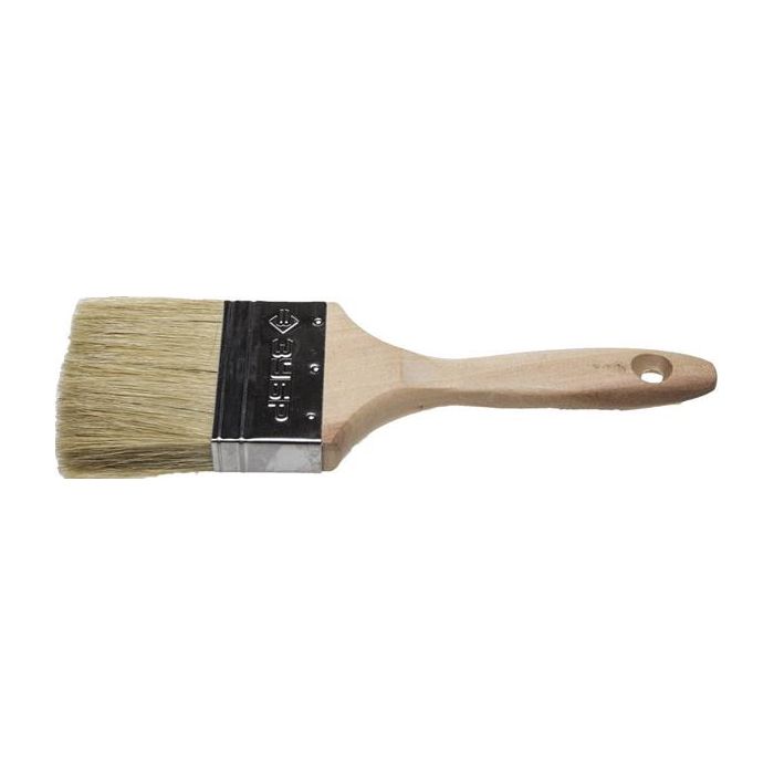 Кисть предназначена для работ с масляными красками и лаками, устойчива к агрессивным составам. Кисть имеет деревянную ручку и натуральную щетину. Размер кисти 75 мм.