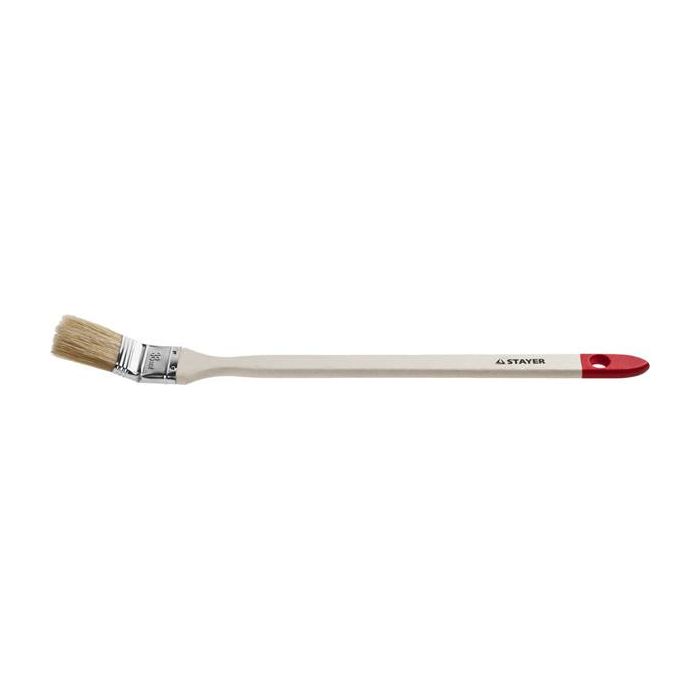 Кисть предназначена для покраски радиаторов. Кисть имеет длинную деревянную ручку, ворс кисти изготовлен из натуральной щетины.