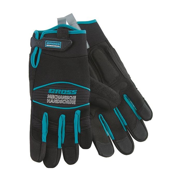 Перчатки представляют собой усиленную конструкцию, предназначенную для выполнения работ повышенной сложности. Для обеспечения антискольжения на пальцах предусмотрены протекторы из латексной резины. Ударопоглощающие вставки на ладонях предохраняют руки от травм и ушибов.