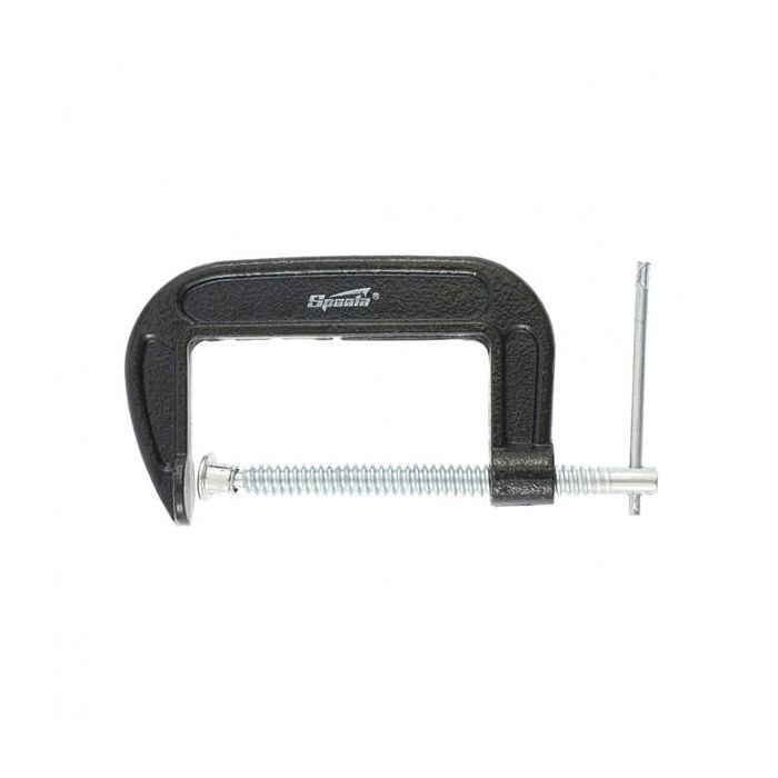 Струбцина SPARTA G-образная — инструмент, используемый для фиксации, удержания деталей и заготовок. Один из кронштейнов струбцины зафиксирован на направляющей, другой может свободно перемещаться. Этот механизм и обеспечивает захват деталей во время работы. Подвижный кронштейн оснащен винтовым зажимом с крупной червячной резьбой. Ширина зажима 75мм.
