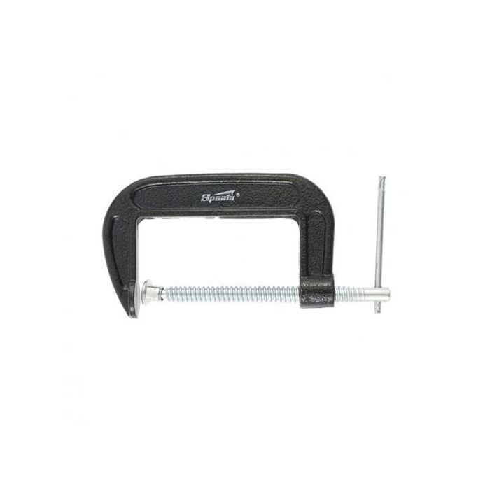 Струбцина SPARTA G-образная — инструмент, используемый для фиксации, удержания деталей и заготовок. Один из кронштейнов струбцины зафиксирован на направляющей, другой может свободно перемещаться. Этот механизм и обеспечивает захват деталей во время работы. Подвижный кронштейн оснащен винтовым зажимом с крупной червячной резьбой. Ширина зажима 100мм.