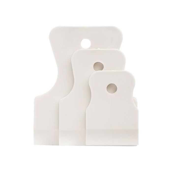 В набор шпателей входит 3 шпателя разных размеров: 40-60-80 мм. Шпатель предназначен для шпатлевания обтекаемо-криволинейных (дугообразных, закругленных, цилиндрических, сферических и других) поверхностей. Также его предназначение - нанесение густых клеев и неагрессивных мастик, затирочных смесей и герметиков в швы и стыки кафельной плитки, линолеума, паркета и других материалов. Полотно шпателя изготовлено из резины.
