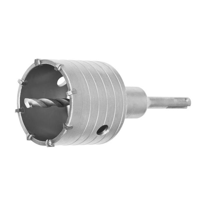 - Центрирующее сверло с твердосплавной пластиной из сплава ВК8С с углом заточки 130 градусов и коническим хвостовиком позволяет точно позиционировать коронку;