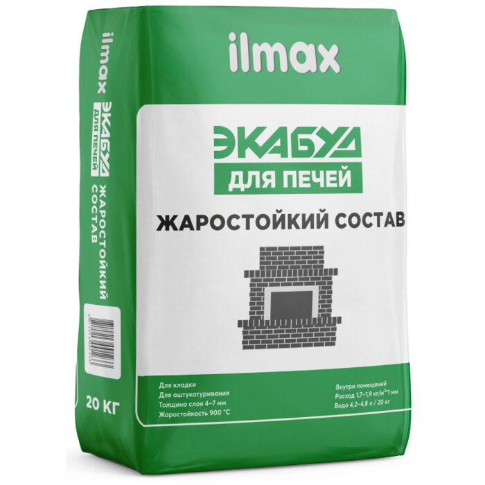 Штукатурка для печей ЭКАБУД предназначена для кладки и оштукатуривания каминов, печей, дымоходов из керамического (красного) кирпича и других огнеупорных материалов (шамотный кирпич и др.).
